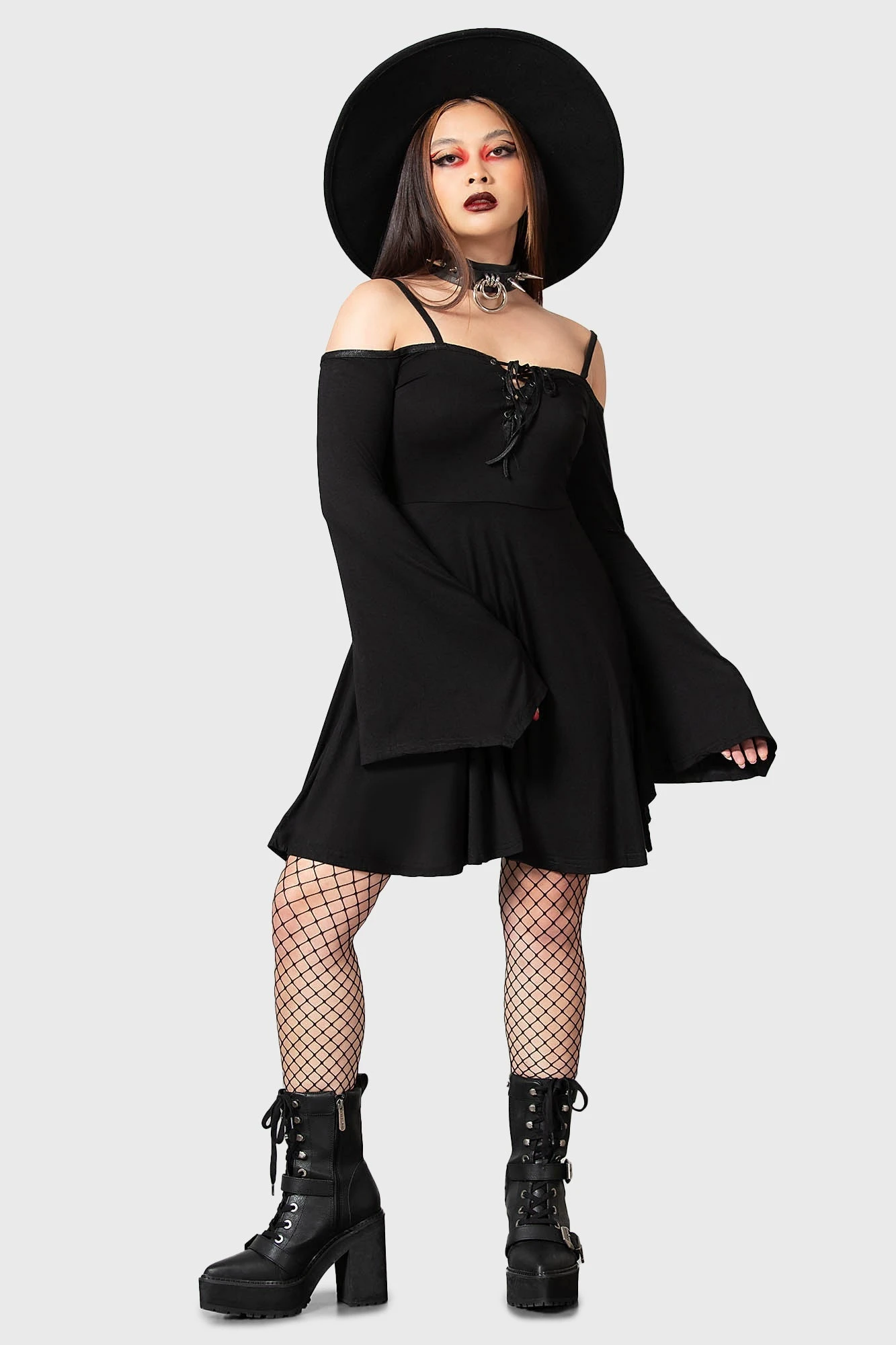 Be closer to the moon any hour of the day/night with the ‘4th Dimension’ dress. Super soft fabric with just the right amount of stretch – for a flattering and comfortable fit. With a low neckline to expose just the right amount of skin, thin straps with lace-up detail to chest and statement long sleeves. An essential piece – easy to wear and goes with anything!