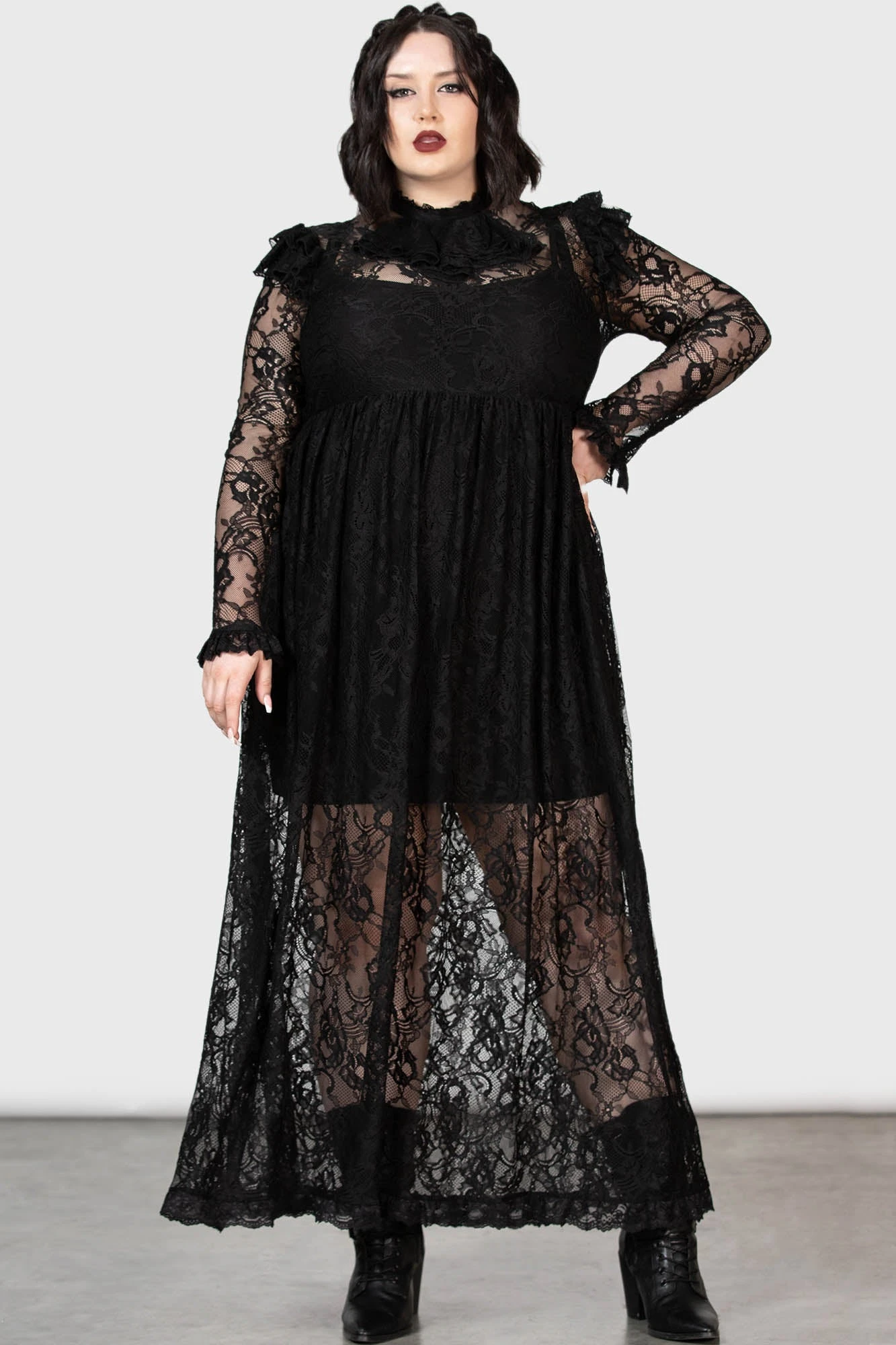 – Delicate frill cuff and hem detail.