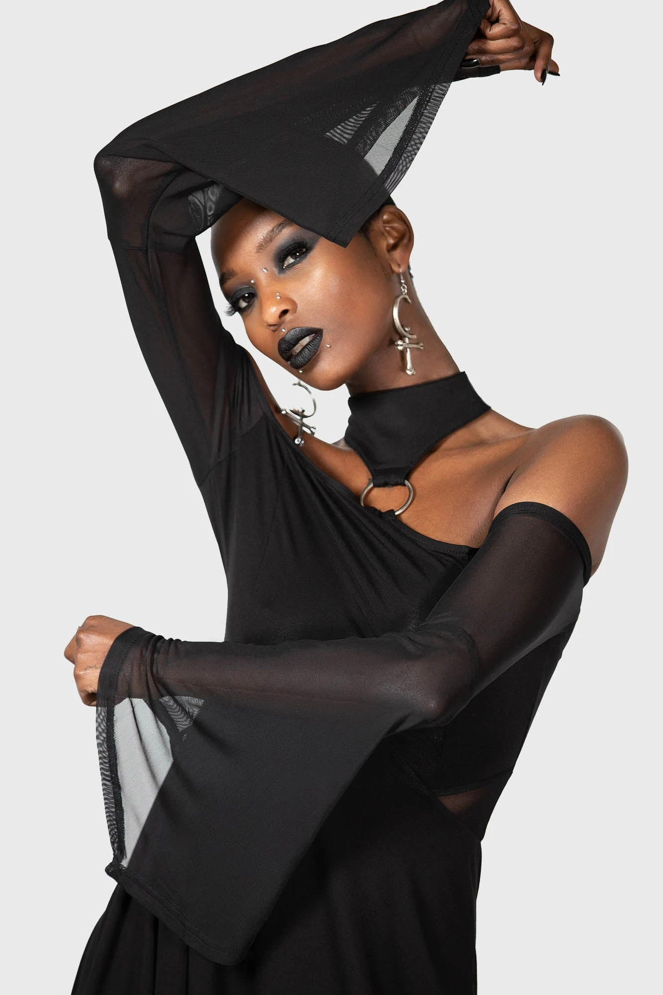 – Flared, mesh sleeves.