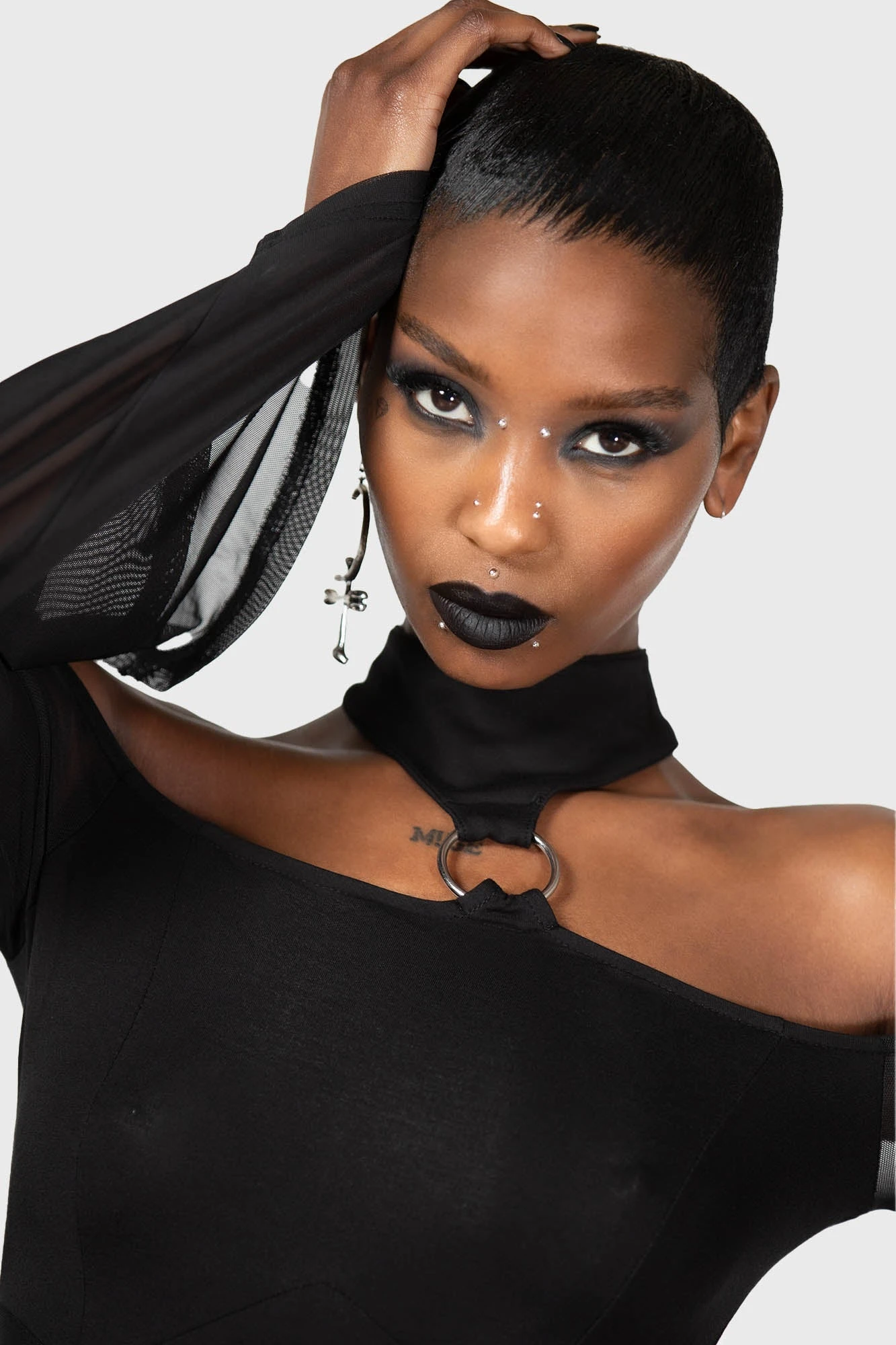 – Choker neckline.